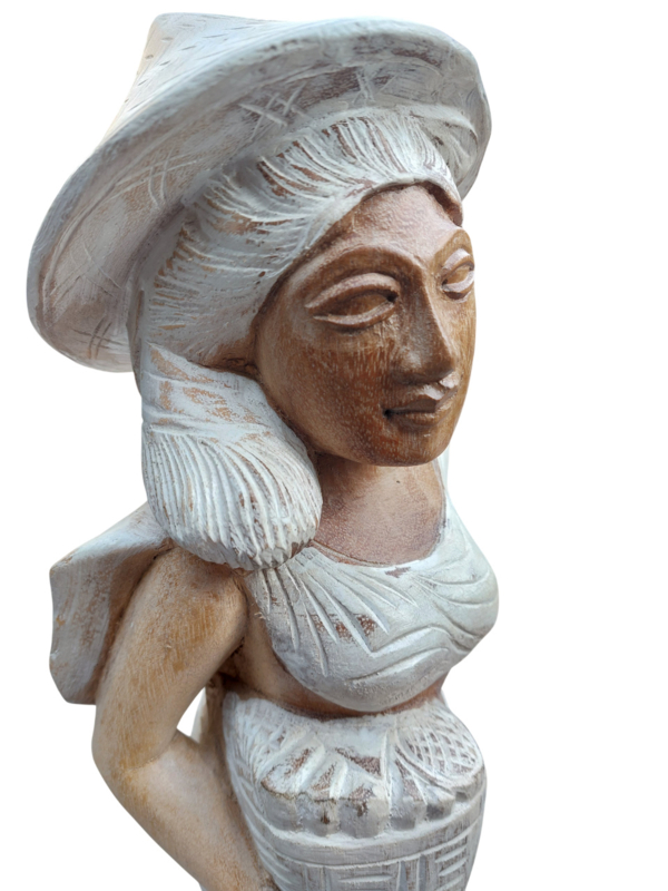 Mooie Balinese vrouw van houtsnijwerk met whitewash details.